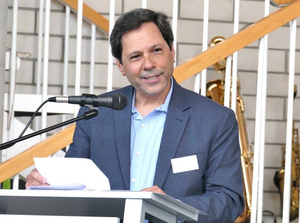Anschließend ging Ronald Volk in seiner, auf Englisch gehaltenen, Laudatio auf das Schicksal seiner Familie ein, dass ihn bis nach Haiger und Herborn geführt hatte. Aufmerksam auf sie sei er durch die Arbeit von Martina Stettner geworden. „Ich hatte zuvor überhaupt keine Vergangenheit, wusste nichts von meinen Großeltern. Jetzt besitzt das Leben meiner Familie wieder Gedächtnis“, so Volk. Jutta Simon übernahm dabei die Aufgabe, den Ansprachen auf Deutsch und Englisch jeweils die passende Übersetzung zu liefern.